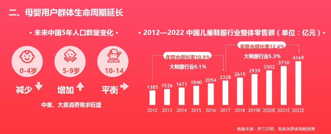 母婴后风口时代两大趋势 国家统计局数据显示,2016年我国新生儿出生率为12.95‰,2018年出生率跌至10.94‰。作为预判母婴行业未来发展的关键指标之一,出生率的下滑预示中国母婴行业已进入后风口时代。 后风口时代的中国母婴市场,有两大行业趋势值得关注: 第一,90、95后及低线城市母婴用户群体高速增长。网易考拉平台数据显示,2018年90、95后母婴用户已成为名副其实的母婴消费主力军,规模占到平台母婴用户一半以上,且购买力强劲;地域上看,低线城市(三四线城市)的母婴销售额增速领先高线城市(一二线城市),这说明低线城市用户对进口母婴商品的需求开始加速释放,且未来还有更大的发展空间。 第二,母婴用户“生命周期”不断延长。根据凯度消费指数显示,未来五年, 5-9岁的中童市场将保持增长态势,这部分孩子正是2016年“二胎政策”下的生育小高峰人群。随着他们的成长,中童、大童相关母婴消费品类市场机会巨大。以儿童鞋服市场为例,第三方数据显示,0-14岁的儿童鞋服细分市场机会凸显。2017年至2022年间,大鞋服行业整体平均增速从之前的6.1%降至5.3%,而儿童鞋服则逆势上扬,从10.9%增至12.4%。到2022年,整个中国儿童鞋服市场将超过4000亿。 抓住后风口三大新机遇 在母婴市场后风口时代,母婴用户的变化也为行业带来了三大新机遇。 第一,洞察90、95后母婴新生代需求,发力“美妈经济”;同时通过优质内容影响该群体消费决策,用内容驱动消费。母婴跨境电商经过五年的发展,平台要更关注“内功增长”,不能只做货架,而要通过优质内容帮助建立有温度的品牌认知。目前,网易考拉已经搭建了一整套内容矩阵,包括种草社区、短视频考拉ONE物、直播,同时背靠整个网易集团的优质媒体资源支持。 第二,不断延展用户生命周期,通过布局优质教育、图书、童装等,全方位满足用户不同年龄层次需求。例如,网易考拉儿童教育消费增长潜力巨大。今年以来,童书增速超50%。今年6月,考拉引入原版书品类,活动当日原版进口童书品类销售提升100%,预计下半年童书还将保持高增速发展。 第三,高低线城市差异化经营。高线城市延展母婴用户生命周期,低线城市深耕0-4岁母婴商品。随着低线城市人均收入不断提高、消费增速超越高线。作为平台,要为低线城市用户提供好货、好价、好服务,迎接低线城市的消费升级。 除此之外,母婴行业应打破定性思维,进行战略新布局。例如,在母婴行业普遍焦虑的出生率下滑曲线图背后,还有另外一张呈上升趋势的曲线图——中国老龄化占比增幅。国家统计局数据显示,2018年末,60周岁及以上人口24949万人,占总人口的17.9%,相较2016年末占比增长了1.2%。 跳跃性思考一下,母婴行业是否能发挥原的优势,拓展有上升趋势的新市场呢?比如原本专注婴儿纸尿裤的品牌,是否可以借原有供应链优势去开拓老年人市场,“从专注婴儿纸尿裤20年,转变为专注纸尿裤20年”?一起来听一下张蕾对《中国母婴市场的后风口时代》的解读分析。 报名方式 1、长按下方海报扫码入群,限时特惠报名听课 【ps:优先进群的同学可抢30个免费听课的名额哦~】 2、点击文末“阅读原文”直接报名