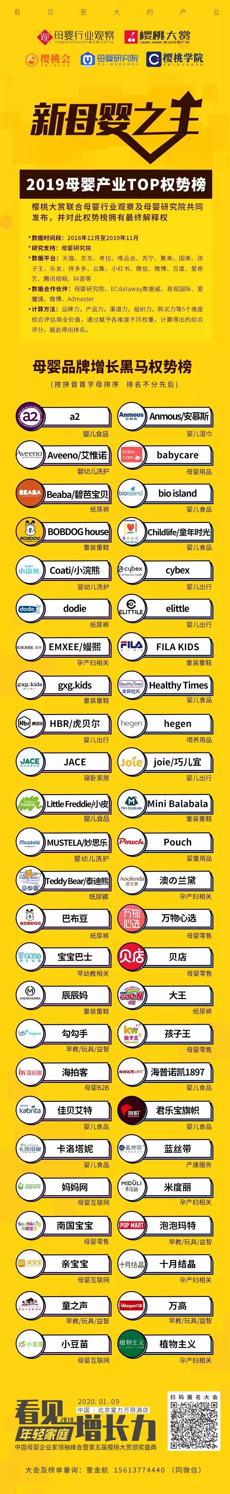 生意难做,但依然有强者突破发展壁垒颠覆品牌格局。可见在消费群体年轻化、渠道碎片化、信息多元化的时代,品牌依旧有无限的发展机会。同时也意味着企业必须准确洞察消费者变化、创新产品、更新渠道布局及营销策略,以创新姿态迎接新一轮挑战。2020年1月9日北京,由母婴行业观察主办的“看见·年轻家庭增长力!2019中国母婴企业家领袖峰会暨第五届樱桃大赏颁奖盛典”(点击报名)重磅开启,babycare首席营销官钢炮、Beaba品牌联合创始人俞小惠等嘉宾将带来精彩分享,来现场,与2000+母婴人一起洞见年轻家庭增长力!
