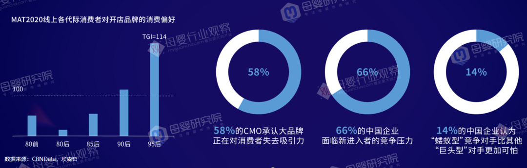 此外,那些比较大的企业面临很大的压力,一是品牌老化问题,二是被新的消费品冲击,三是中国企业面临新的竞争压力,“蝼蚁型”竞争对手比“巨头型”竞争对手更可怕。