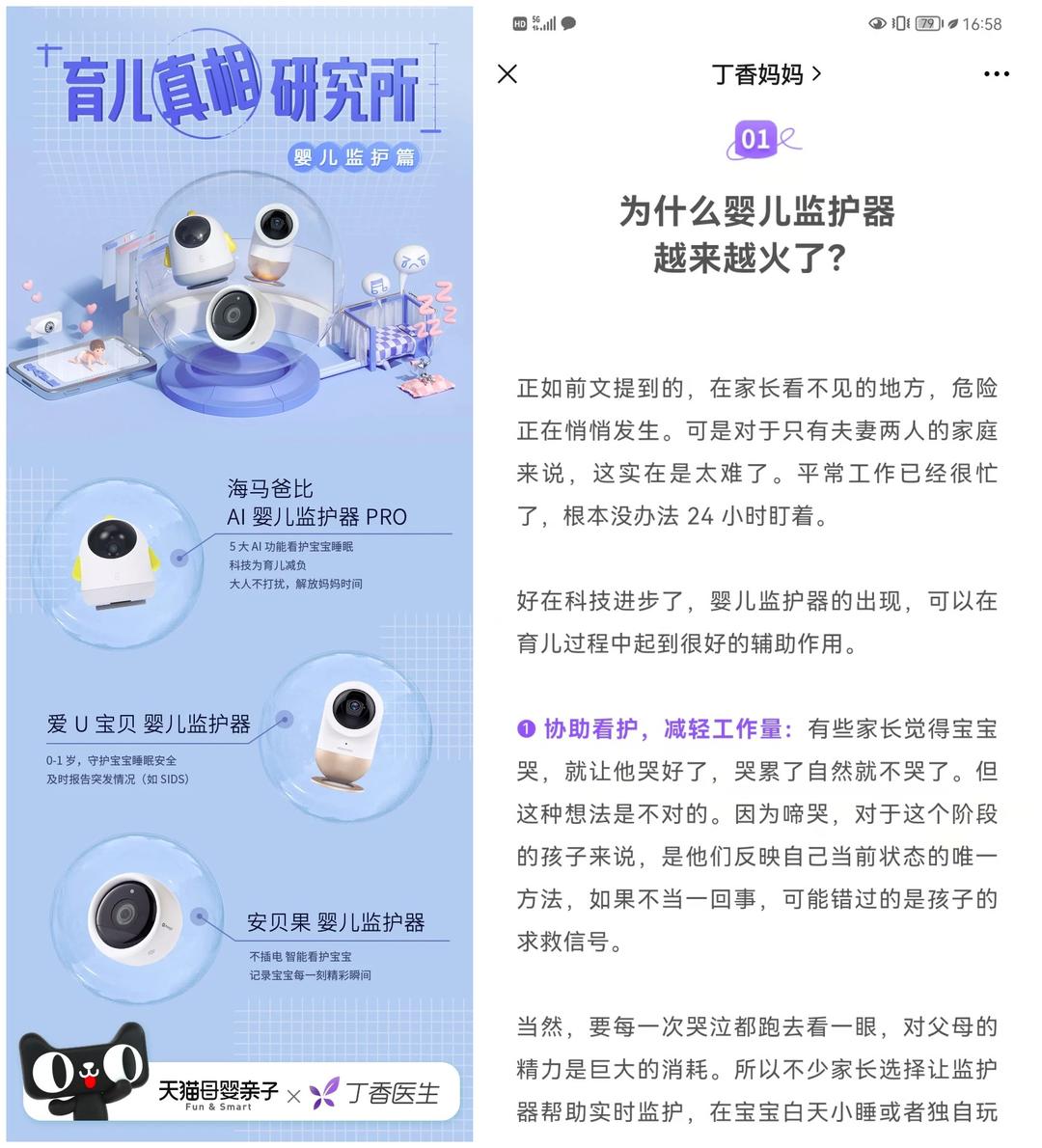 早在7月份,天猫母婴亲子已携手丁香妈妈共建“育儿真相研究所”,结合婴儿监护器对目标人群进行品类教育及科普,相关文章阅读数高达9.6万,为后续品类种草转化奠定了坚实的基础。