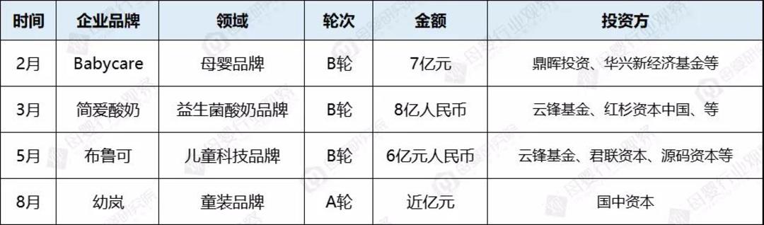 在其他母婴细分领域,一些拿到投资的优秀企业也值得关注,如母婴互联网平台亲宝宝完成D轮融资,由达晨财智、深创投共同出资,总融资额2.5亿元,在此轮融资之前,亲宝宝已经完成了4轮融资,投资方包含顺为资本、创新工场、复星和好未来。