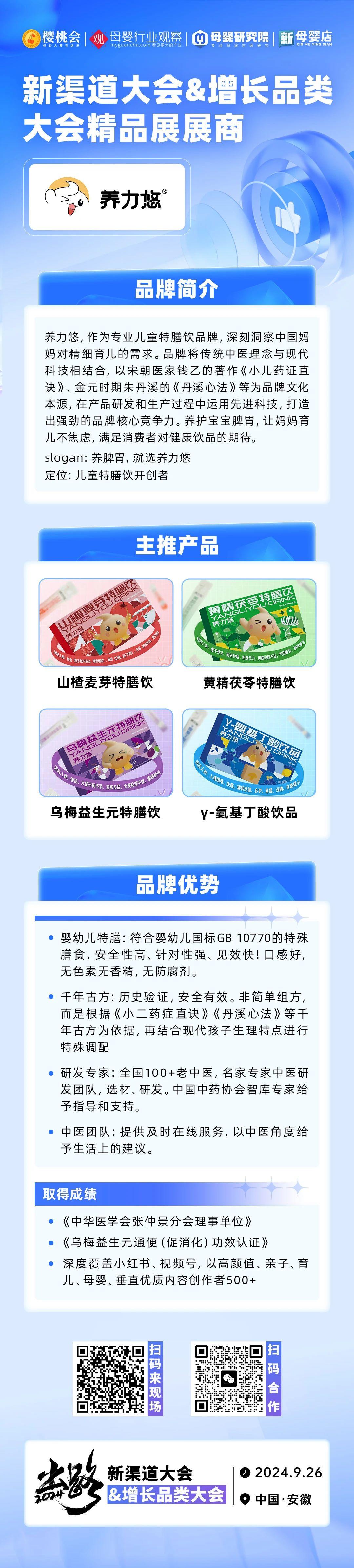 专业儿童特膳饮品牌「养力悠」确认参展2024新渠道大会&精选品牌对接会
