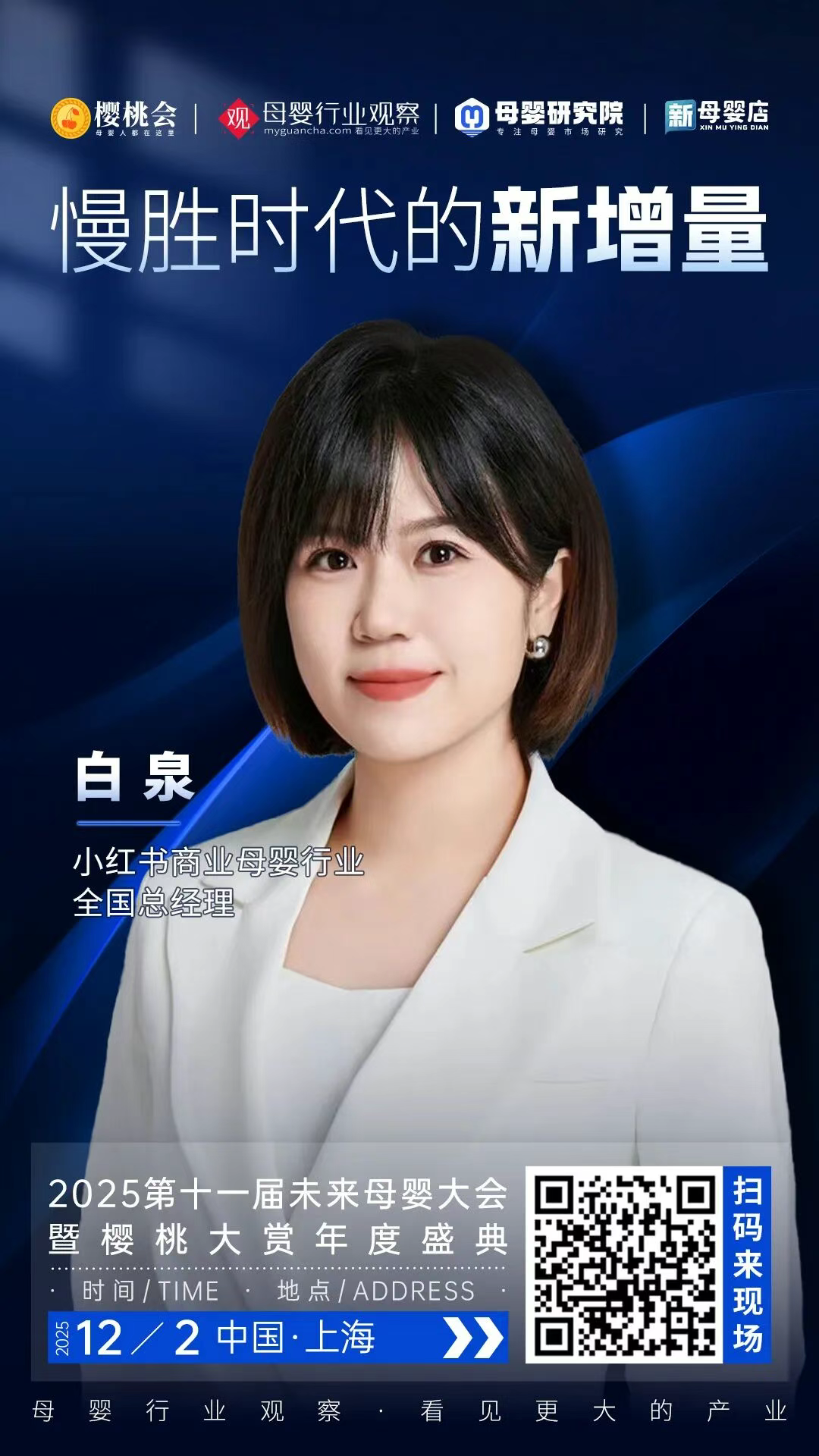确认!小红书商业母婴行业全国总经理白泉将出席「2025第十一届未来母婴大会暨樱桃大赏年度盛典」