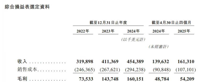 财务数据印证其强劲增长势头。2022 年至 2024 年,公司营收从 3.20 亿美元增至 4.54 亿美元,净利润更是从 1840 万美元飙升至 9510 万美元,2023 年、2024 年同比增速分别达 251.7% 和 47.0%,2025 年前四月营收与净利润仍保持双位数增长,展现出优质的盈利质量。