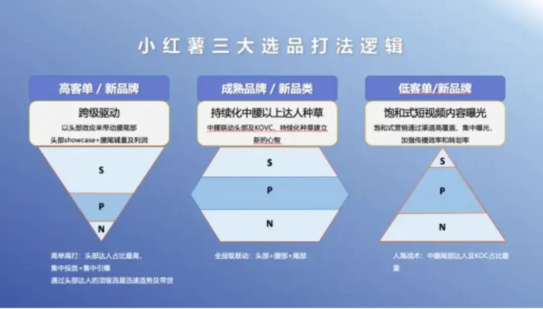 目前,小红薯科技已深度绑定合作母婴达人超5000人,覆盖全平台头部、腰部、koc、素人,全年带货规模超50亿。小红薯科技的核心竞争力在于能够根据品牌定位、客单价与品类阶段,定制差异化策略,为品牌规划匹配其个性化增长路径。具体来说,针对高客单/新品牌,小红薯以头部达人的种草力与带货力为核心,带动腰尾部达人协同,实现“跨级驱动”快速破圈;针对成熟品牌/新品类,则以中腰部达人为助力,联动头部达人与KOC,构建“六边形达人矩阵”筑牢用户心智;面向低客单/新品牌,通过高频次、广覆盖的短视频内容投放,以“饱和式曝光”加强传播效率和转化率。