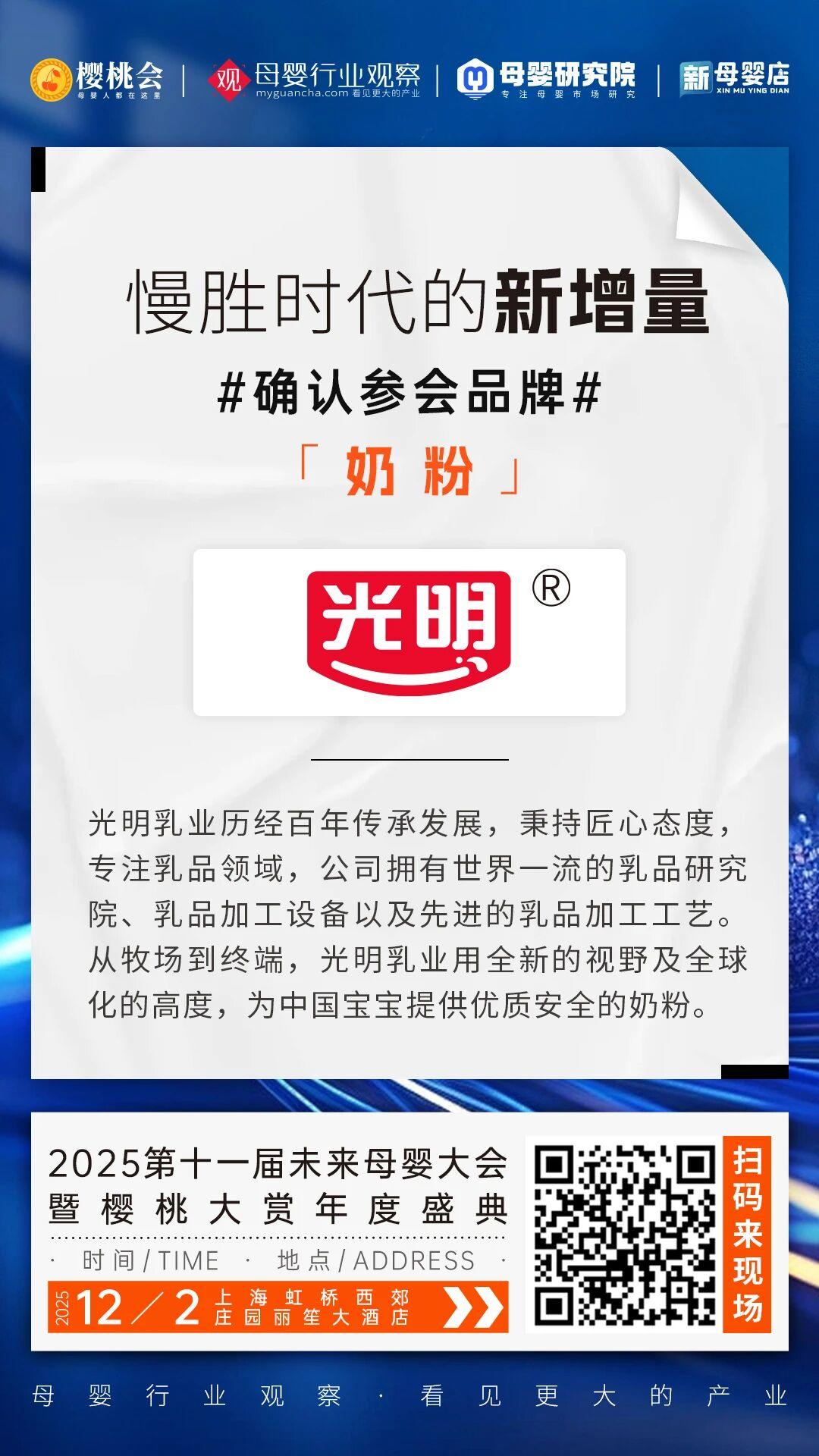 奶粉品牌「光明乳业」确认参加2025第十一届未来母婴大会暨樱桃大赏年度盛典