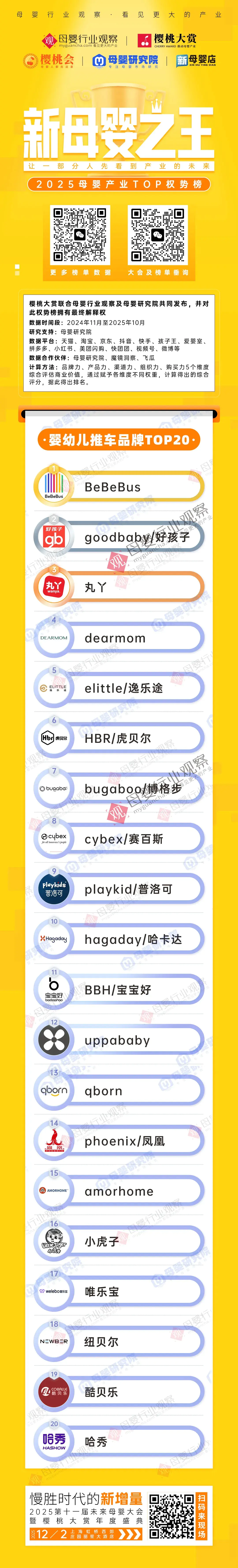 总的来看,能够持续领先的品牌,无一不是以用户需求为中心,在颜值、便捷与场景三个维度上持续创新的实践者。12月2日上海,由母婴行业观察主办的「慢胜时代的新增量·2025第十一届未来母婴大会暨樱桃大赏年度盛典」高能来袭!来现场,一起探讨婴童手推车领域的增长机会~