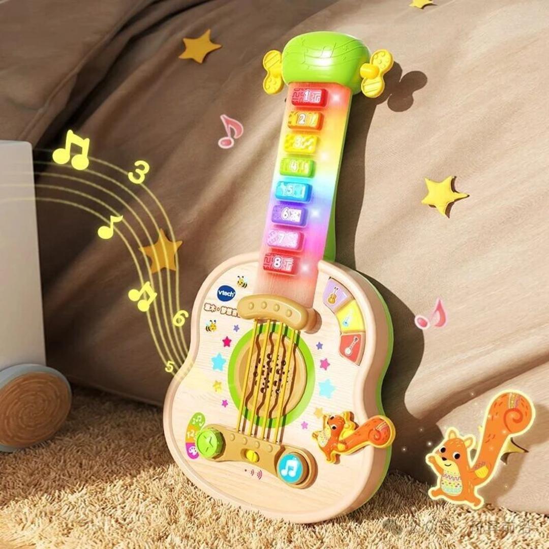 源木·梦想吉他则是一款有趣的音乐玩具,不同于只能弹出物理声响的乐器模型,它可以给幼儿提供丰富的音乐互动体验。
