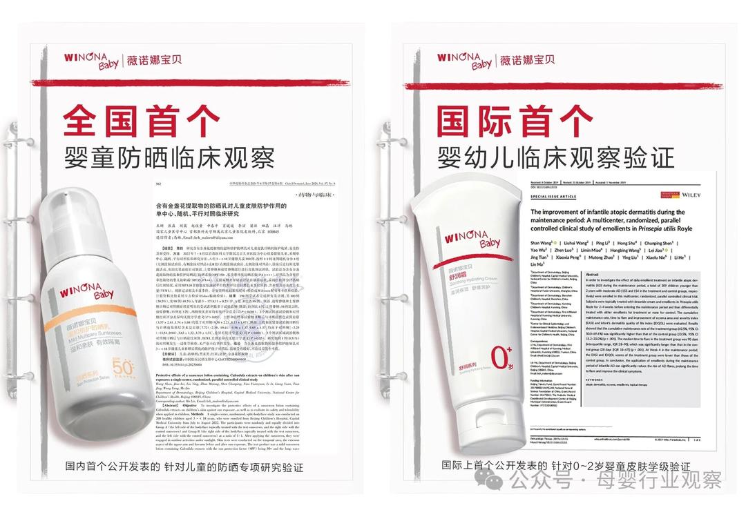 而这一标准的诞生,正是源自薇诺娜宝贝的提议发起,由首都医科大学附属北京儿童医院马琳教授牵头,联合全国十余位儿童皮肤科权威专家,历时一年多潜心打磨。作为国内首个聚焦儿童护肤品临床验证的专项标准,该团标针对儿童皮肤娇嫩、屏障脆弱、耐受性低的生理特征,首次明确了人体试验的核心准则与安全要求,有效杜绝了成人数据套用,为行业构建了安全有效的研发准入门槛。事实上,薇诺娜宝贝也早已是这一理念的定义者和规范实践的先行者。作为全球首个公开发布0-2岁婴儿特应性皮炎临床观察成果的品牌,薇诺娜历时五年完成了606例婴幼儿专研实测。该成果不仅被权威指南收录,还发表于国际SCI期刊,实现了该领域的首个突破。从开创性的临床实证,到牵头制定行业标准,薇诺娜宝贝始终以专业力量推动婴童护肤向更规范、更科学的方向稳步前行。