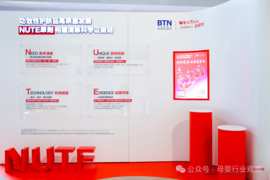 本届论坛中,昆明医科大学第一附属医院何黎教授等行业泰斗悉数出席,围绕婴童湿疹等议题分享最新研究成果。何黎教授在主题演讲中系统阐述了“NUTE”科学原则,强调婴童功效护肤产品必须以需求为原点,以技术为支撑,以循证为基石,以安全为底线。这一原则作为封面文章刊登在中国皮肤学顶刊《中国皮肤性病学杂志》,为行业提供了从“营销驱动”向“科学驱动”转型的理论支持。