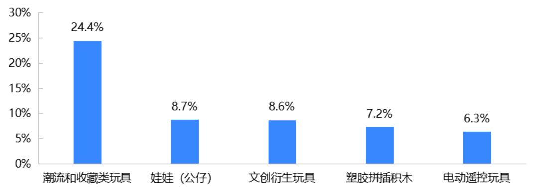 24.4%的受访玩具线下终端表示,潮流和收藏玩具是其销售额增长最快的品类。