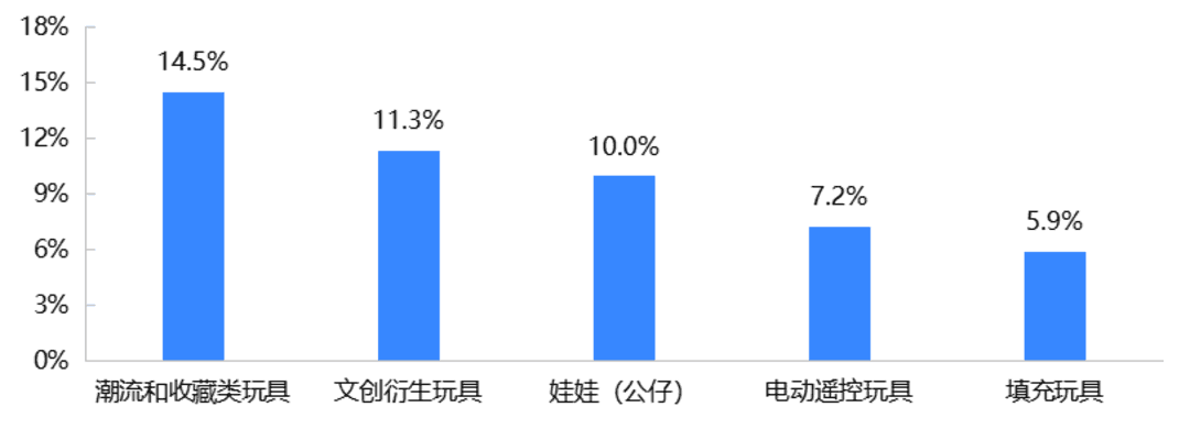14.5%的受访玩具线下终端表示,潮流和收藏玩具是其毛利率提升幅度最大的品类。