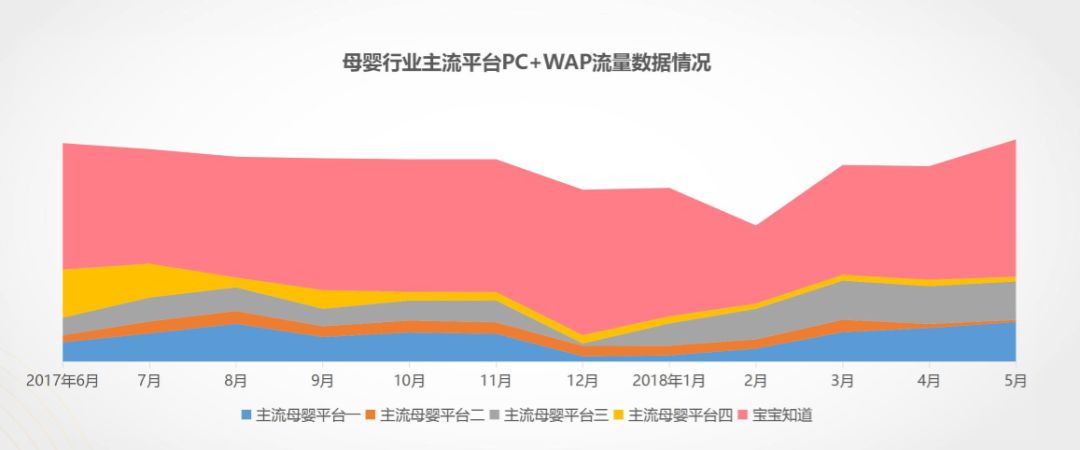 第三方数据显示,母婴行业主流平台PC+WAP流量数据方面,宝宝知道的占比遥遥领先。