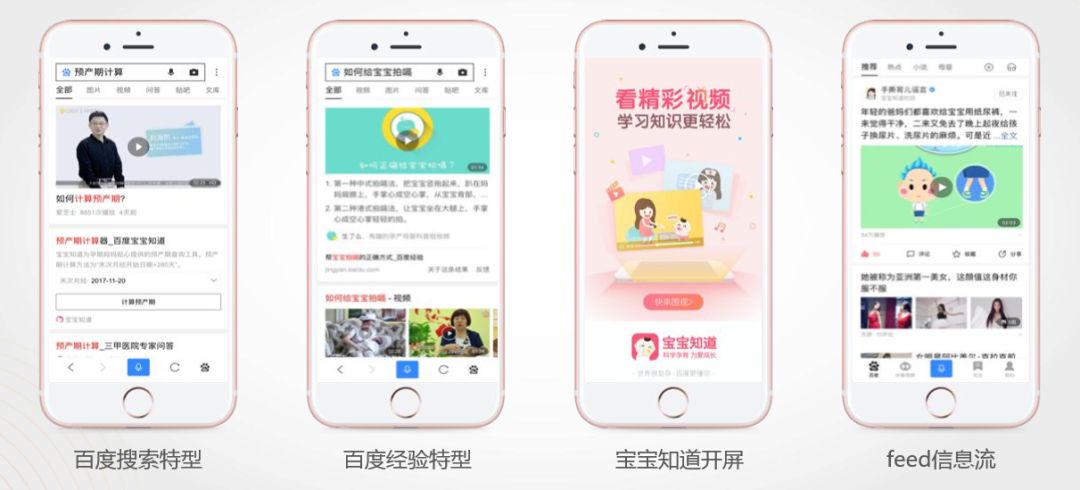 宝宝知道的分发渠道有什么优势?在宝宝知道与品牌方合作的这些视频里面,有百度搜索的特性,因为我们知道这个渠道用户爱搜什么,以及什么样的位置重要,这些内容可以直接在相应的位置展现,通过效果最优匹配,可以是百度搜索、宝宝知道开屏,feed信息流等。