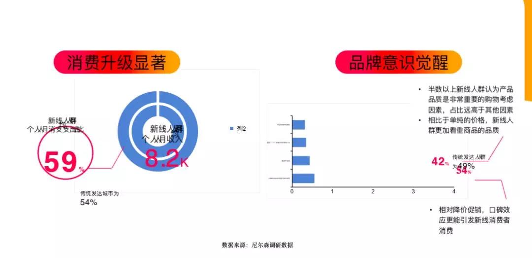 我们提出来一个新的概念叫做“新的消费前线城市”,所谓“新前线”就是经济发展趋势良好向上,居民消费水平高速提升的城市。这样的城市有着新的增长点:新线人群更敢消费、品牌意识逐步在觉醒。