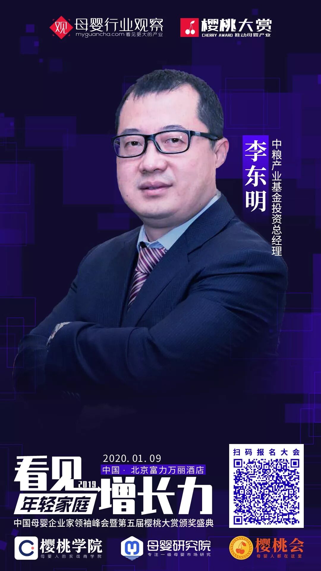 导读:不增长,就出局!在人口红利不断消失、经济下行重压下,抓住年轻家庭是母婴企业实现破局增长的关键所在。品牌如何精准洞察,俘获年轻消费者?企业如何破圈而出,赢得未来母婴之争?2020年1月9日,由母婴行业观察主办的“看见·年轻家庭增长力!2019中国母婴企业家领袖峰会暨第五届樱桃大赏颁奖盛典”(☚点此报名)将在北京重磅开启。来现场,与2000+母婴人,一起洞见年轻家庭增长力,增长2020!中粮产业基金投资总经理李东明确认参加!