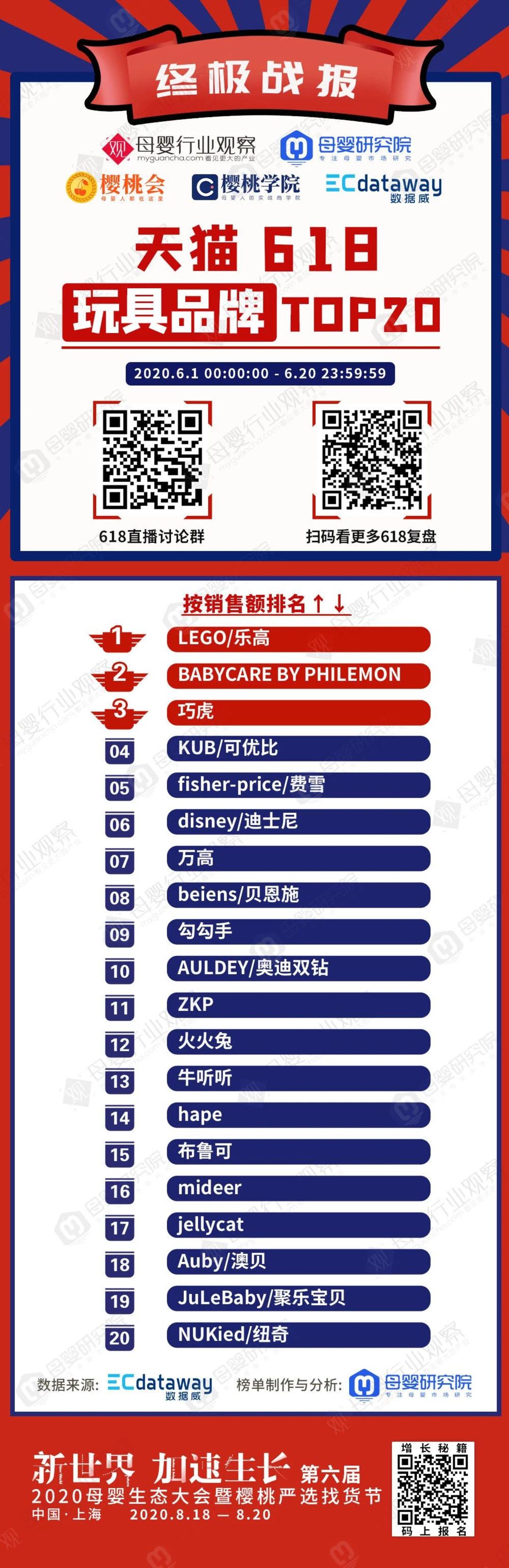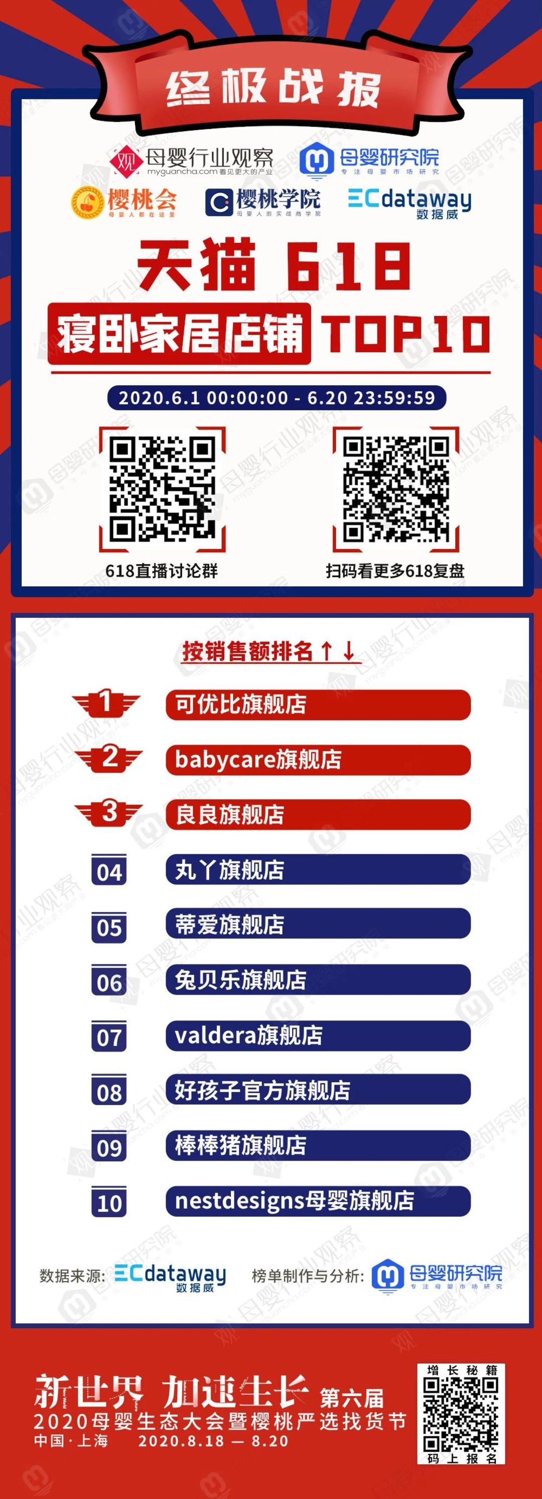 天猫618终极榜单:13大母婴类目品牌TOP20,店铺TOP10