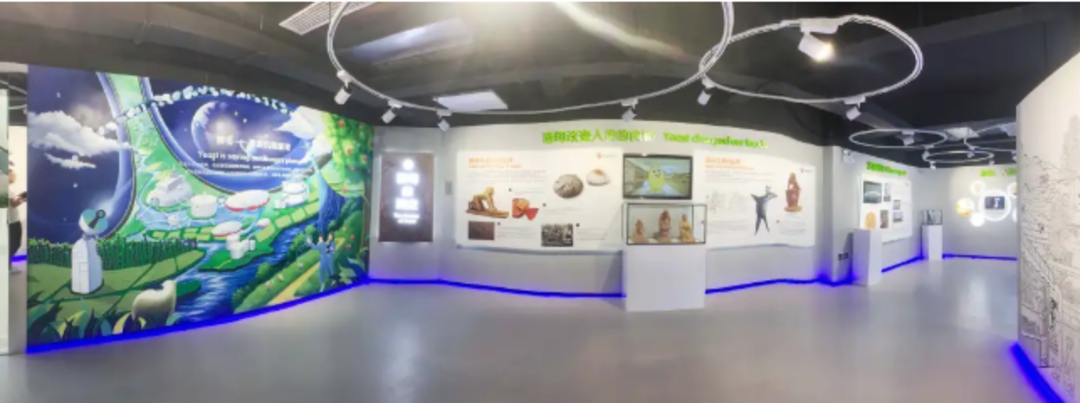 展馆采用了现代化的印象式、交互式、沉浸式等多种展示手段,通过壁画、器物、视频、雕塑、展板、光影互动屏等载体,生动形象地诠释酵母和酵母营养科技,为参观者带来全新的酵母营养科普体验。