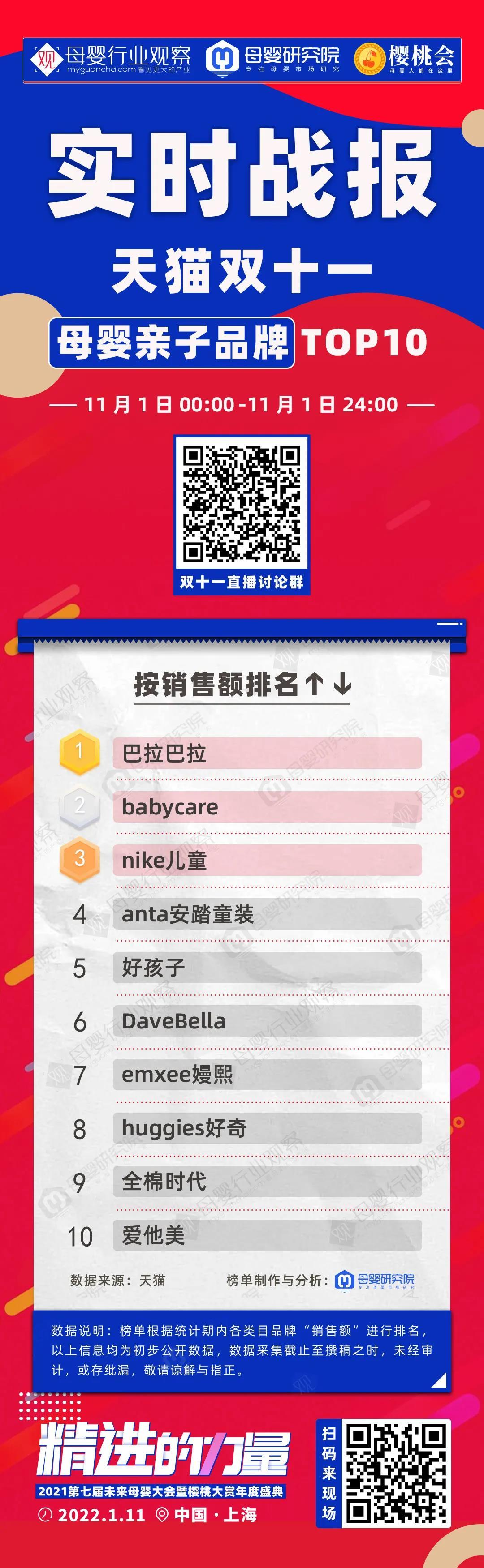 天猫双十一开售首日,母婴亲子品牌TOP10榜单