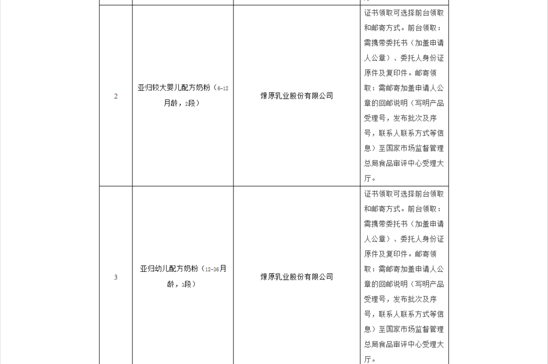 2月8日,国家市场监督管理总局食品审评中心发布婴幼儿配方乳粉产品配方注册批件(决定书)待领取信息及邮寄详情单,涉及42款产品,详情如下。(国家市场监督管理总局食品审评中心)