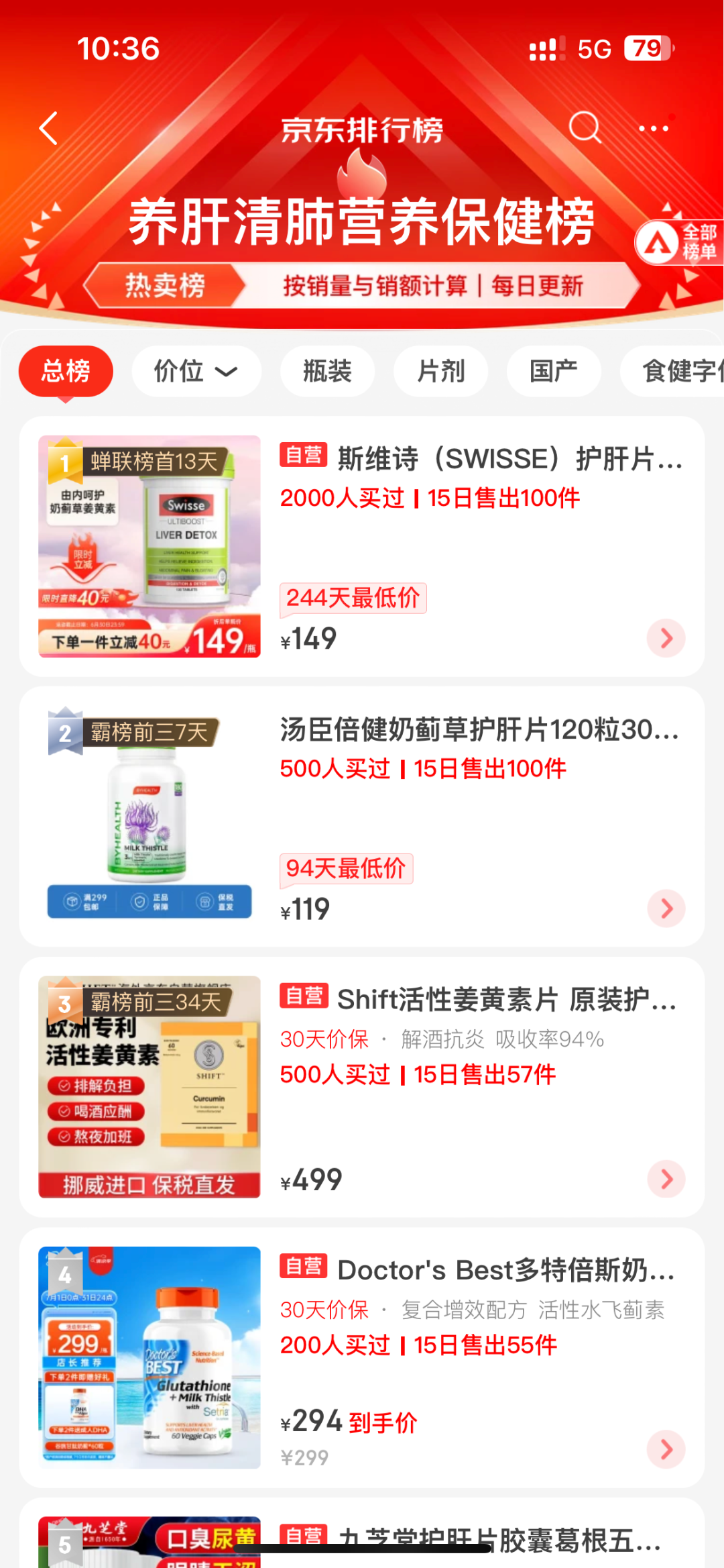 聚焦具体产品,以京东平台的“养肝清肺营养保健榜”作为参考,榜单TOP10产品中有五款以奶蓟草为主要成分,其中位居榜首的是健合集团旗下的子品牌「Swisse」,次席则被国内膳食补充剂巨头「汤臣倍健」所占据,除两家头部企业外,金达威旗下品牌「Doctor Best」与新西兰品牌「GO Healthy高之源」亦取得了不错的排名。