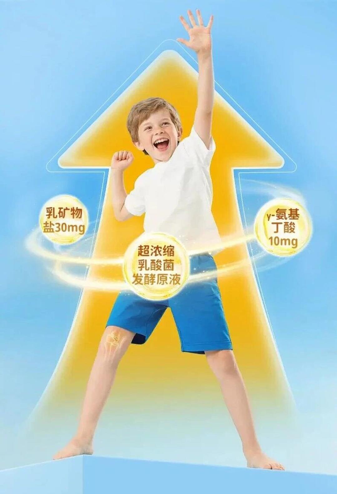 孩子的身高牵动着家长的心。高钙y-氨基丁酸软糖中的3大成长力元素——乳矿物盐、γ- 氨基丁酸和超浓缩乳酸菌发酵原液,协同作战。