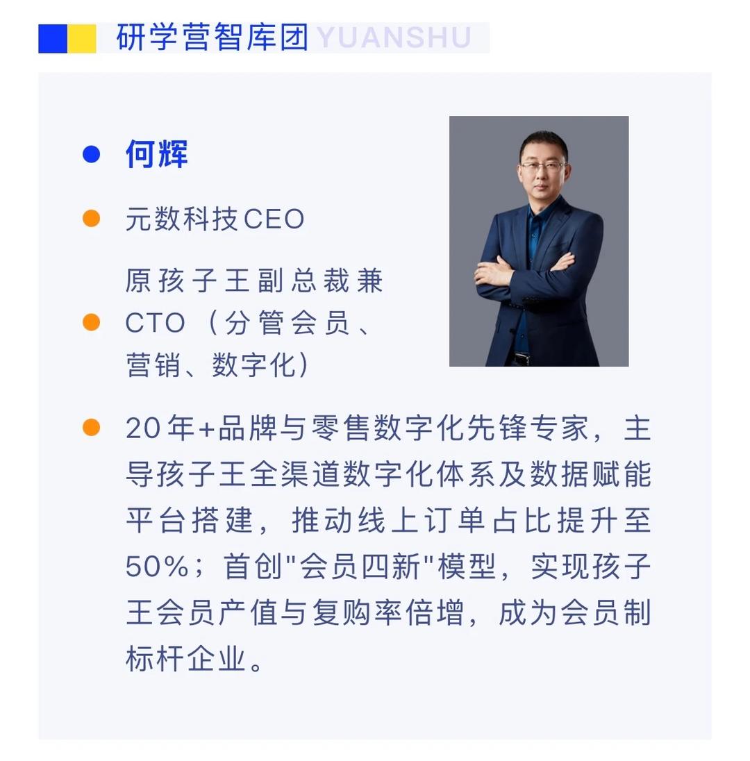 讲师:何辉-元数科技CEO原孩子王副总裁兼CTO,分管会员、营销、数字化