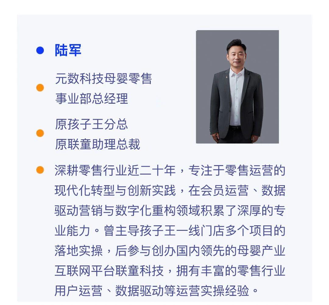 来自孩子王数字化&会员团队原班核心成员,真实操盘经验,行业一线实战派。