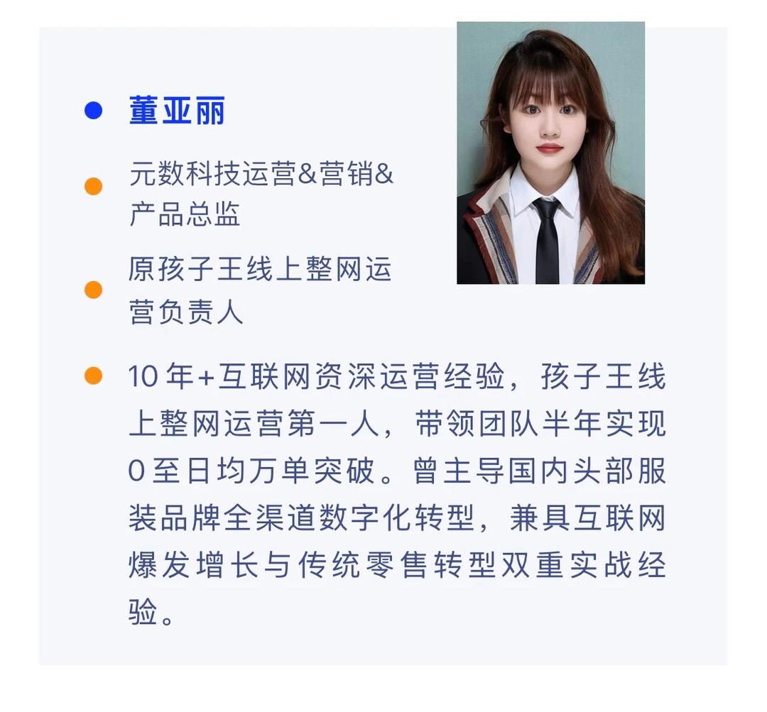 讲师:董亚丽-元数科技运营&营销&产品总监原孩子王线上整网运营负责人