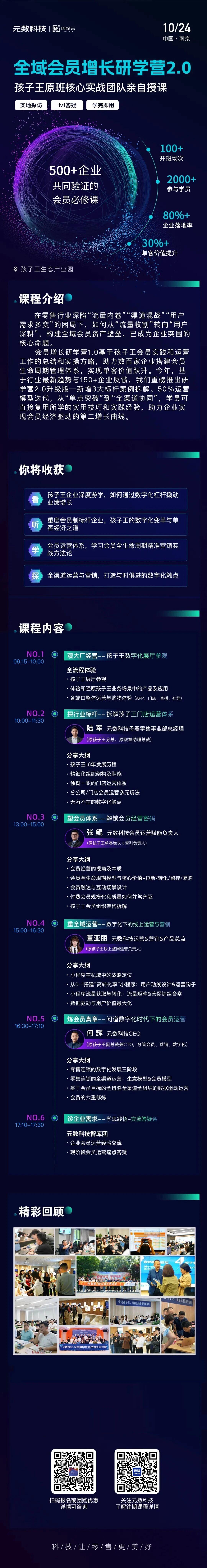 10月24日(周五)元数会员增长研学营,特邀孩子王总部/分公司会员运营原班核心操盘手团队亲授,深度剖析会员增长背后的底层逻辑与实战打法。