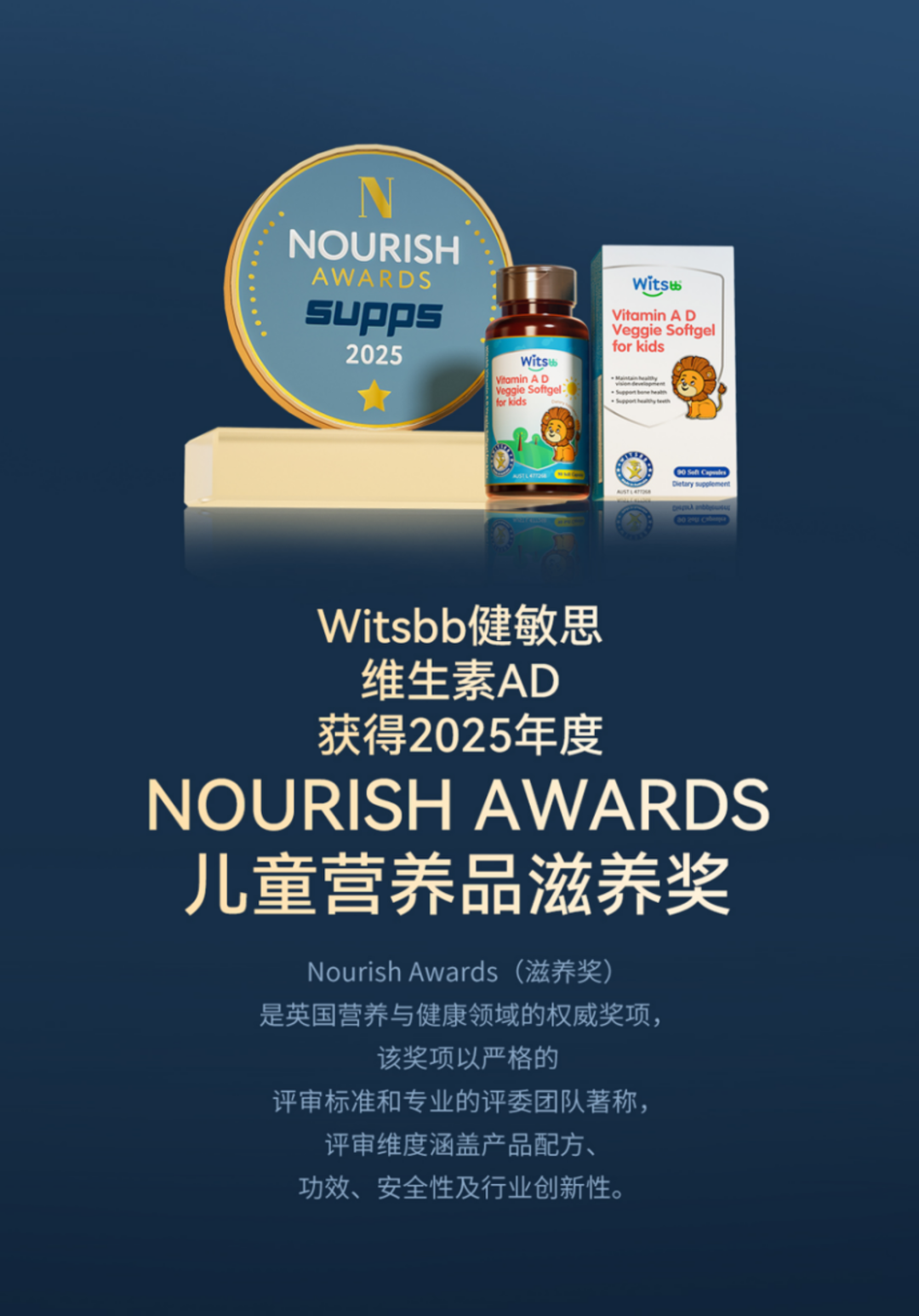据悉,Nourish Awards的评审流程极为严谨。评审团由注册营养师、知名儿童营养专家、食品行业权威专家等组成,确保了评选过程的专业、公正与权威。Witsbb健敏思维生素AD能够在此标准下赢得青睐,标志着其产品力已获得国际顶尖专业层面的验证。