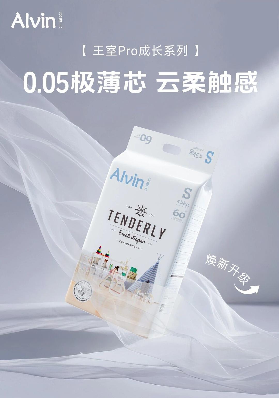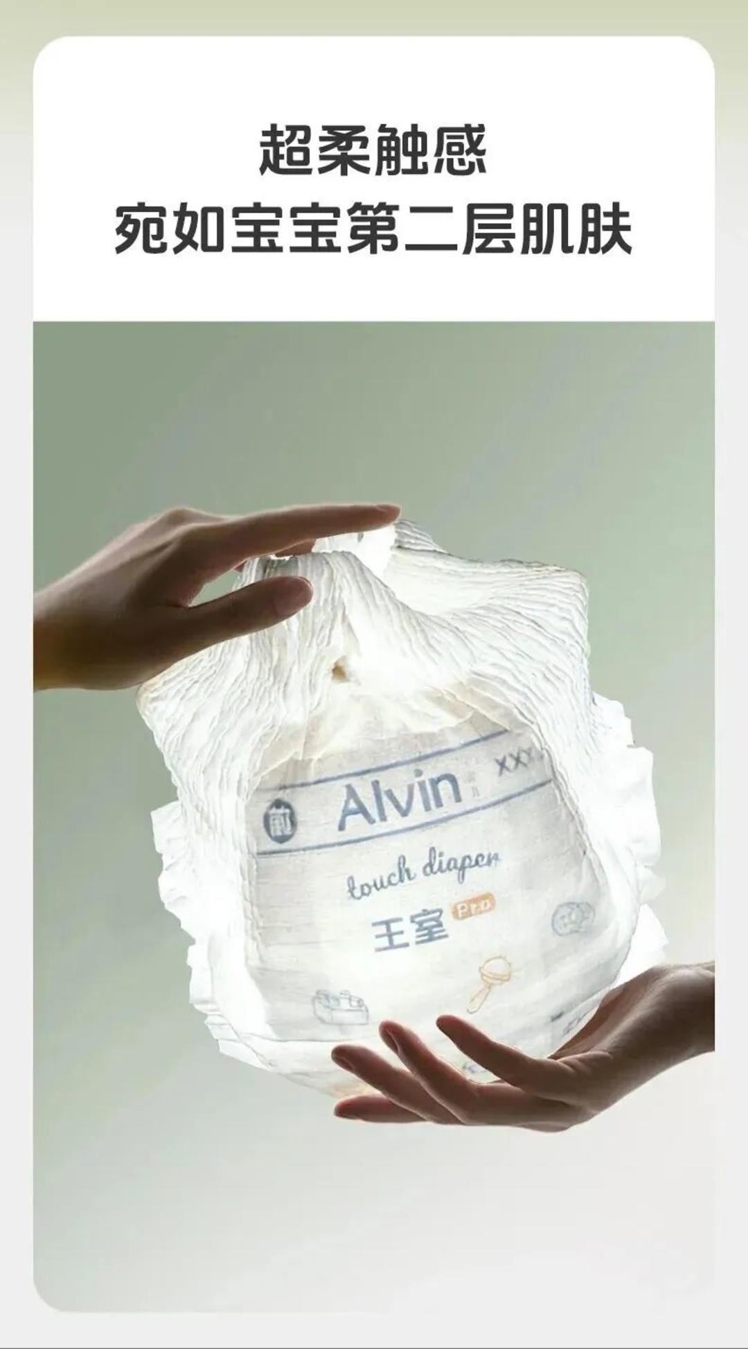 以近日Alvin艾薇儿最新重磅上市的高端系列「王室pro」纸尿裤为例,其延续了Alvin艾薇儿一贯的高品质打造思路,从内到外、从整体到细节均精益求精。