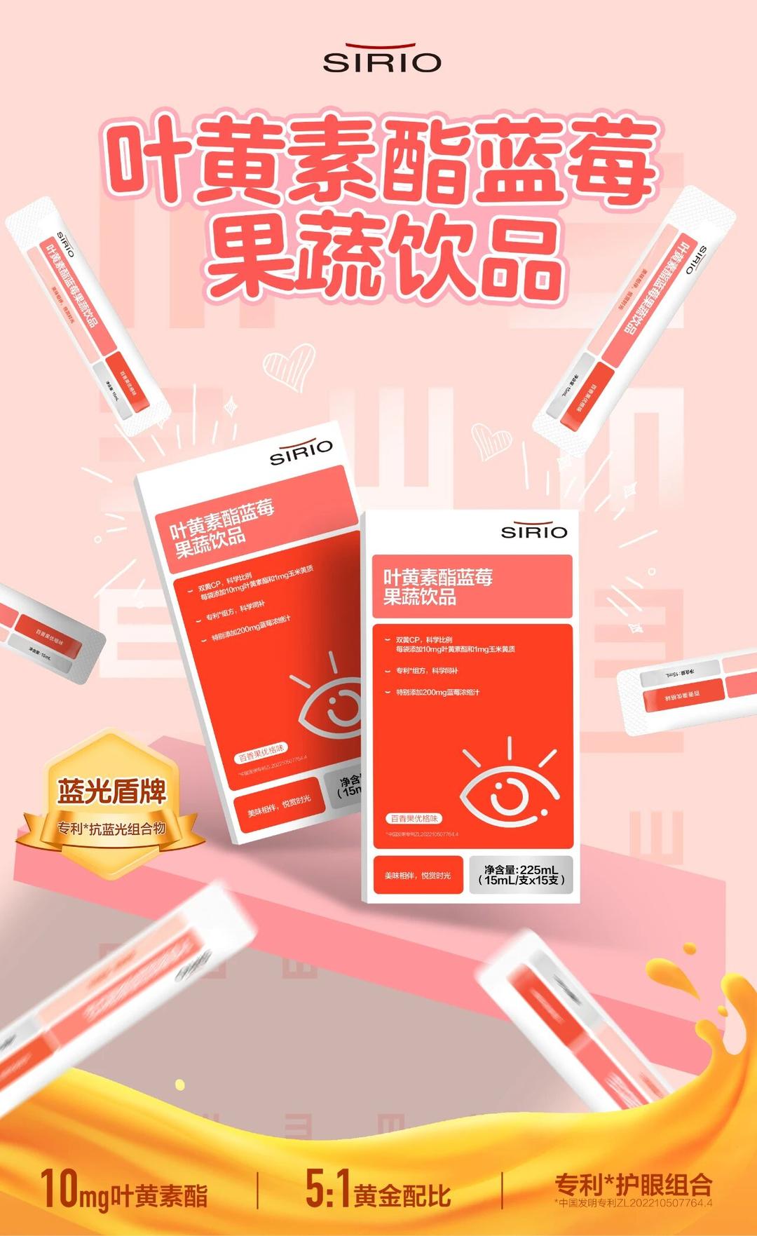 在此趋势下,仙乐健康前瞻性布局,推出叶黄素酯蓝莓果蔬饮品。该产品以“双黄护眼CP”为配方核心,特别添加高含量专利[3]叶黄素酯,稳定性与吸收率俱佳;5:1科学搭配玉米黄质,协同提供视网膜黄斑区关键营养,帮助维持视觉健康。同时还融入了意大利黑醋栗、专利[4]虾青素等抗氧化成分,养护再升级。