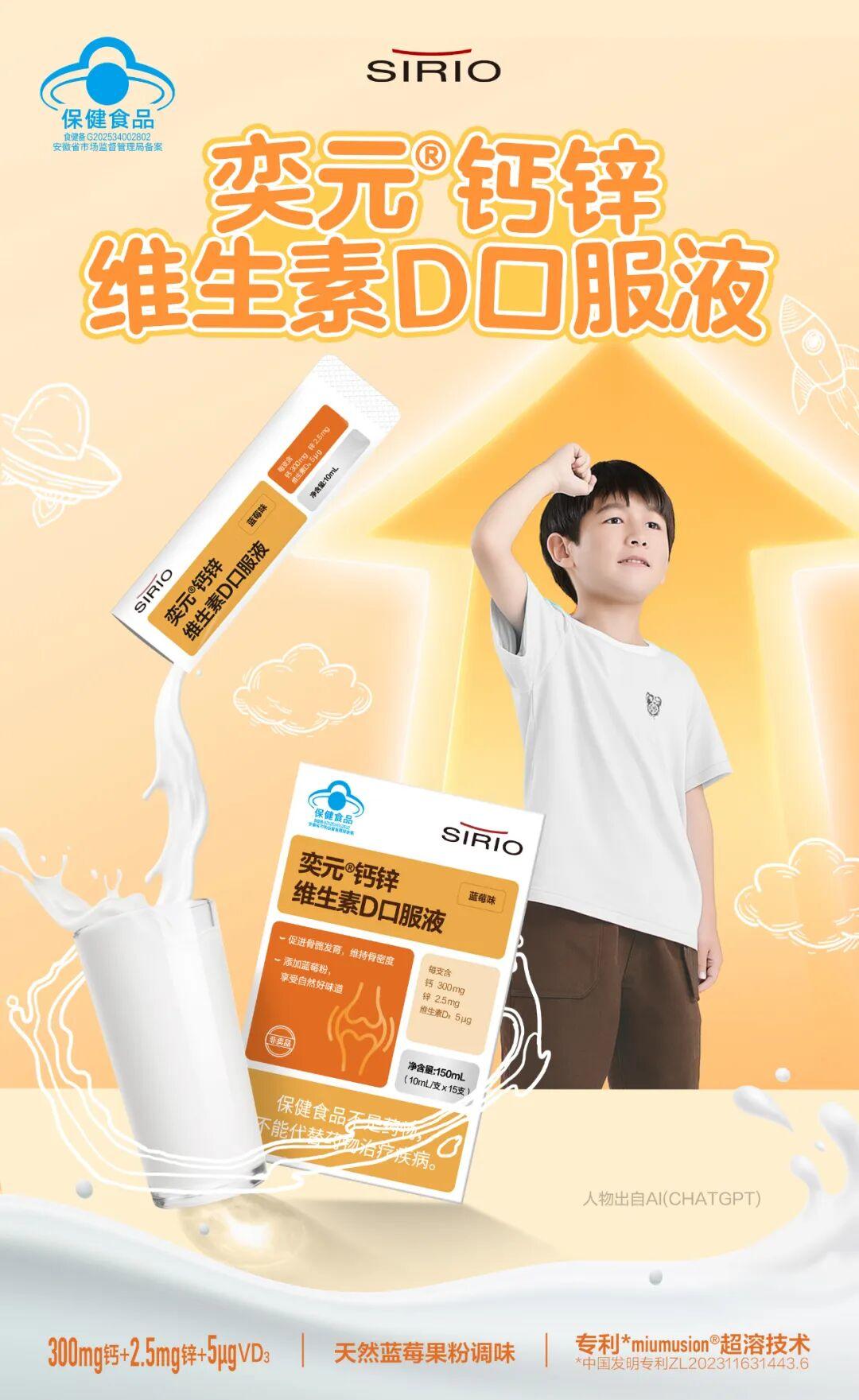 奕元®钙锌维生素D口服液是一款专为成长关键期设计的创新营养补充产品,它甄选自云南的奥尼尔蓝莓,通过FD冻干工艺锁留天然营养与口感的同时,还采用独家专利MIUMUTION®超溶技术,模拟牛奶钙的分散结构,将钙的平均粒径控制在母乳营养粒径水平,更小更均一的粒径大幅提升了肠道吸收效率。此外,该产品还科学配比维生素D与锌,三者协同作用下,能全面支持宝宝健康成长。