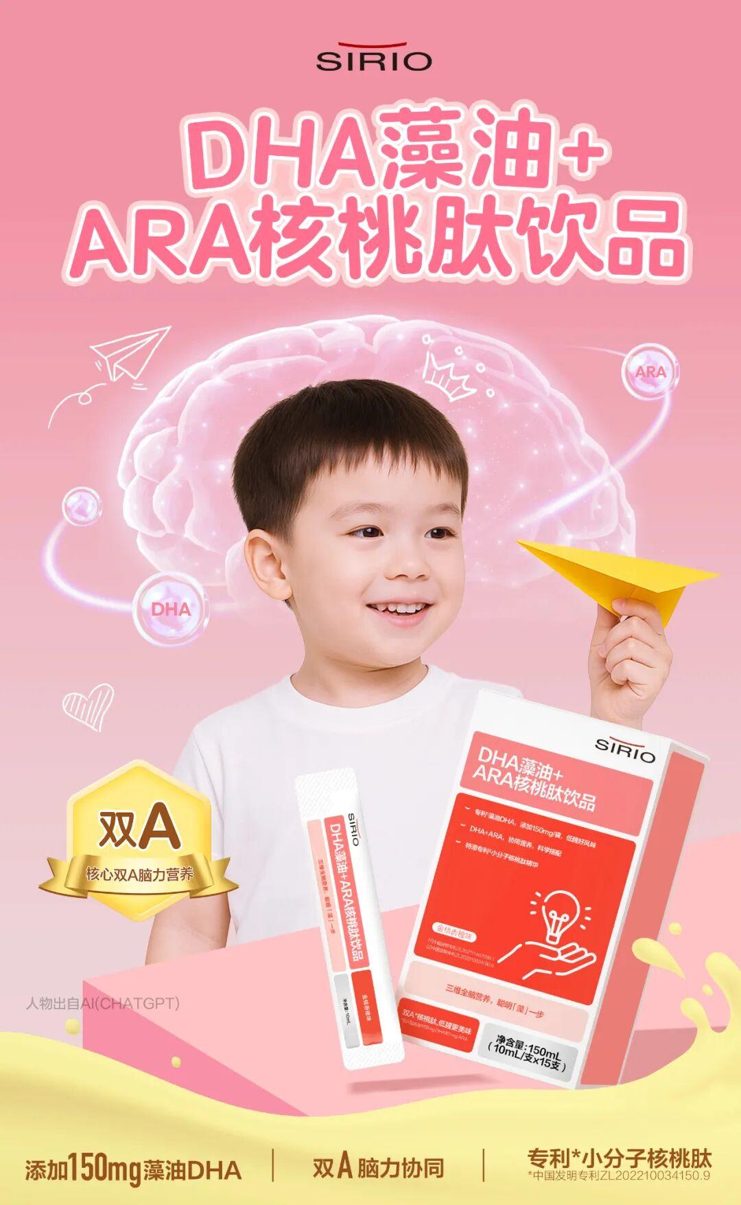 基于这一认知,仙乐健康推出DHA藻油+ARA核桃肽饮品,以“双A协·同”的营养策略,关爱宝贝们脑营养与认知能力发育。该产品在原料上甄选专利藻油DHA[1],来源纯净、品质晶纯、过程可控;每袋含150mgDHA,科学搭配ARA,为智慧成长提供科学营养基础;另外,产品还创新加入专利小分子核桃肽[2],采用定向酶解与低温萃取工艺,确保分子量控制在1000Da左右,更易吸收。