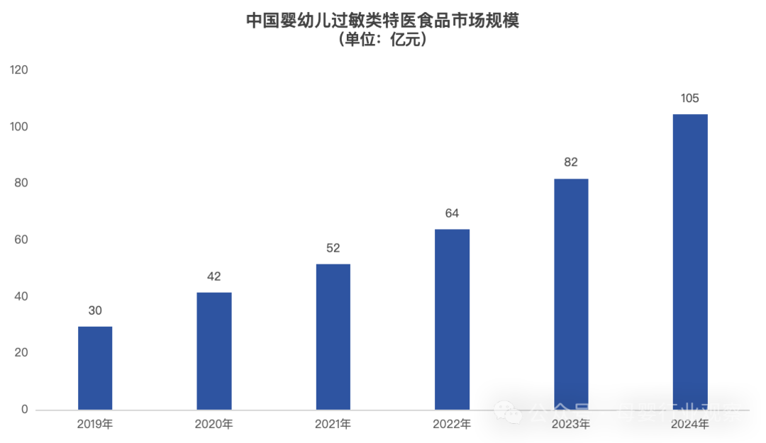 灼识咨询报告数据显示,2024年中国过敏类婴儿特医食品市场规模已达105亿元,约占婴儿特医食品市场的77.4%,且在较长一段时间内保持两位数的高速复合增长,市场潜力巨大。这其中,水解蛋白奶粉作为其中的核心品类,正从一个小众专业选项,成长为决定市场未来的关键力量。