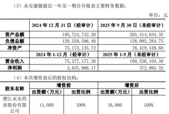 而另一边,最新公告显示,子公司永安康健近几年业绩一路飞涨。仅2025年前三季度,永安康健未经审计营收就达到约1.01亿元,远高于2024全年的0.75亿元营收。