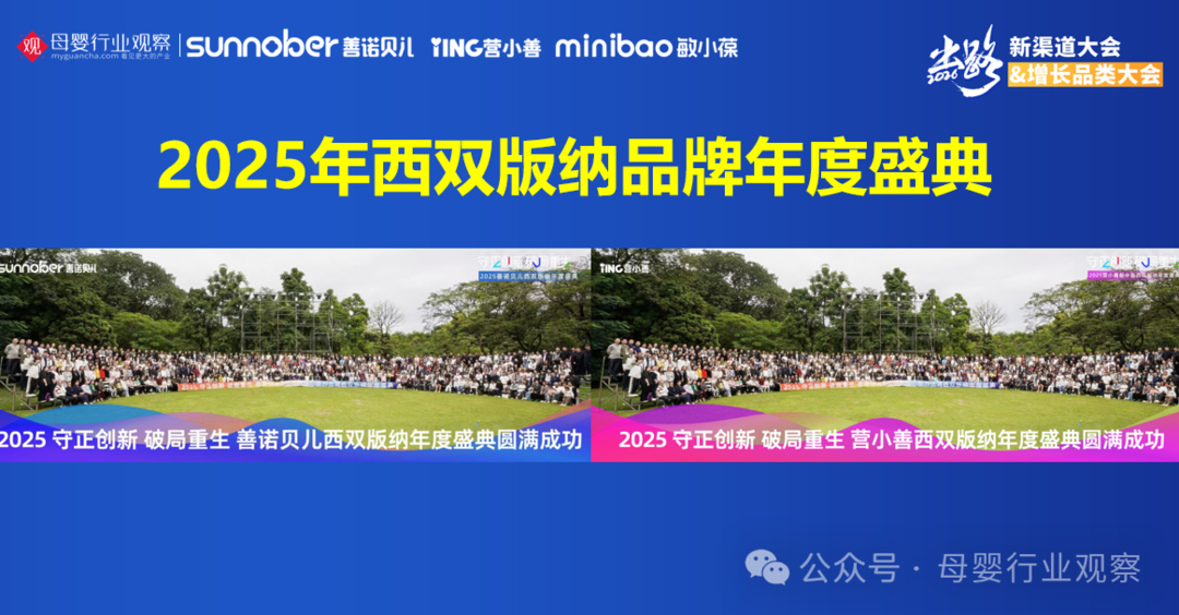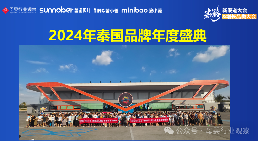 凭借这一完整的专业赋能体系,2025年善诺贝儿几乎囊括了母婴行业各大奖项。品牌也持续扩大市场声量与团队凝聚力,比如在云南举办超千人年会,2024年在泰国举办超800人年会,并累计送出168辆宝马与奔驰。