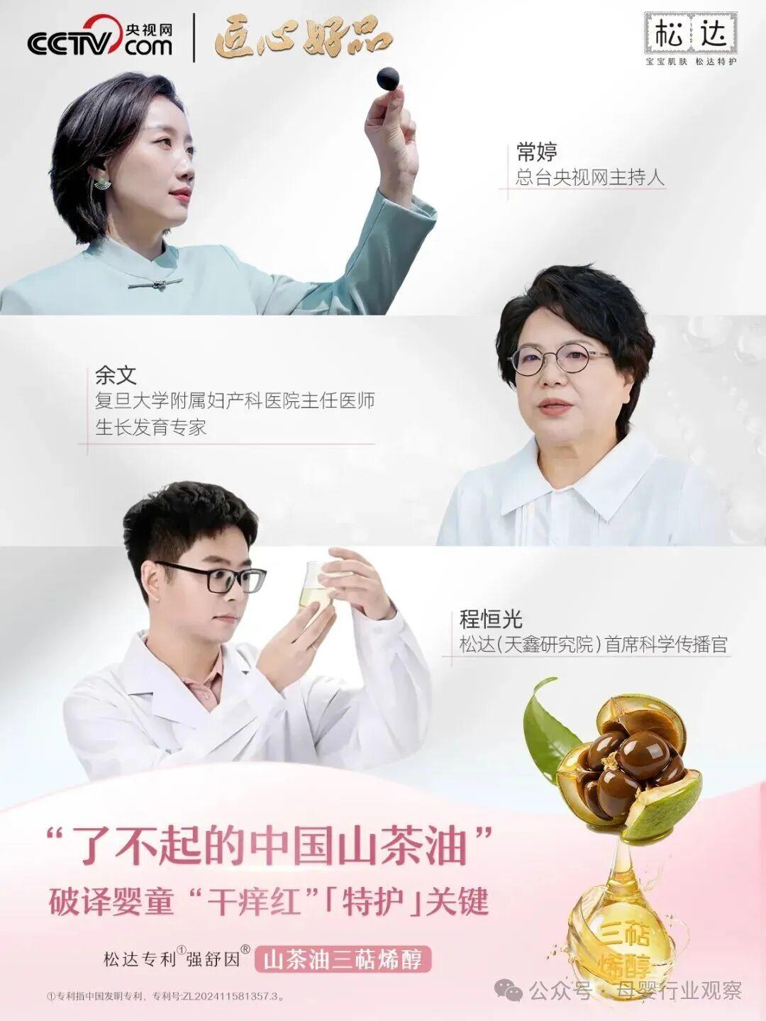 也正是得益于松达在成分精研与落地深耕方面的长期积淀,近日,央视网特别邀请松达拍摄《了不起的中国山茶油》溯源短片,走进松达天鑫研究院和山茶树种植基地,从权威视角,客观呈现山茶油作为中国特色成分在婴童护肤方面的独特价值,在系统解析松达围绕山茶油三萜稀醇这一天然珍稀成分的创新探索与应用实践的同时,揭开了山茶油从润肤到特护跃迁背后的关键密码。