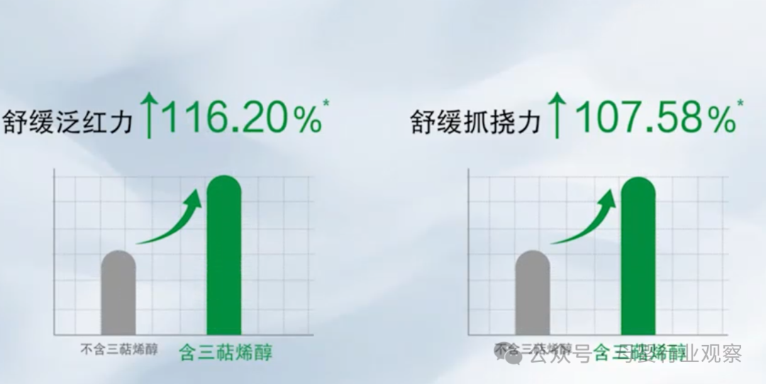 其一,先行量化明确山茶油三萜烯醇功效。松达发现三萜烯醇在肌肤敏感高相关因子抑制方面有明显优势,与三油酸甘油酯相比,其对IL-1α、TSLP的抑制作用分别上调1.6倍、1.59倍,同时可与山茶油中的角鲨烯达成婴童肌肤特护维度的协同增效。
