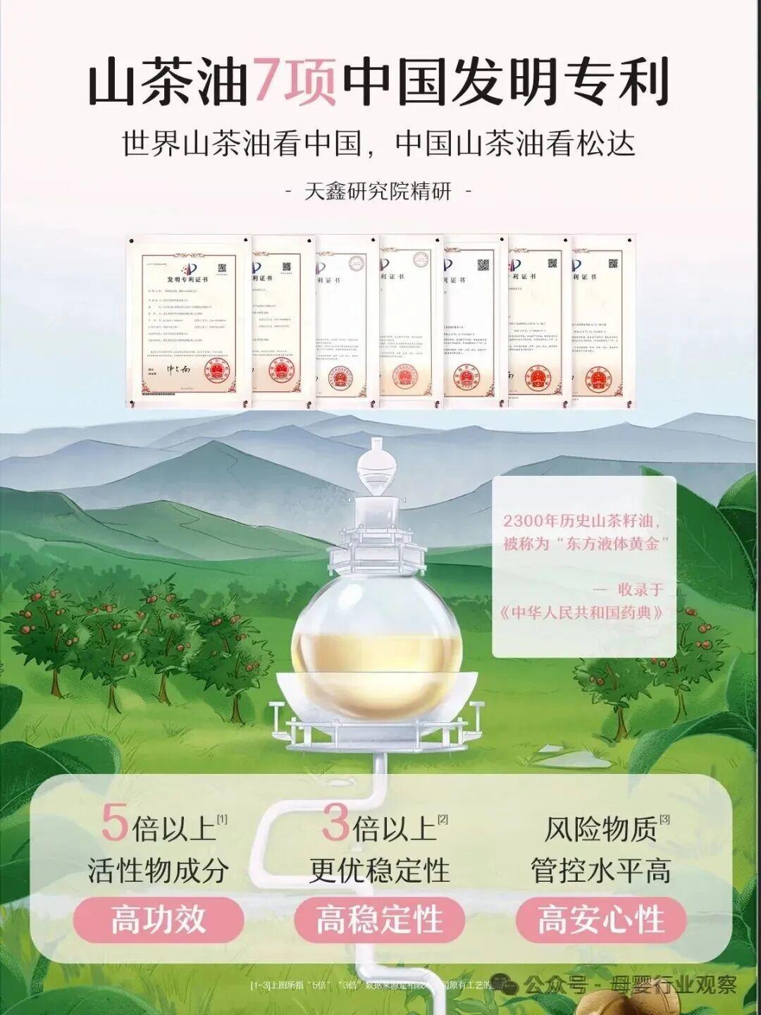 正是基于这样的科研“无人区”探索精神,松达历经三代,用十余年的戮力创新,实现了山茶油在婴童功效护肤领域的创新研究与应用的多面开花,目前已取得七大山茶油发明专利,覆盖成分制备、含量测定、工艺优化、配方应用等多个技术方向。此外,松达还正在推进中国山茶油护肤品行业标准建设,以自身高标准的实践赋能山茶油婴童护肤产业,其山茶油研究成果还成功发表于SCI国际期刊,获得国际学术界的高度认可。可以看到,松达并未止步于自身的创新发展,更致力于推动整个行业向上发展。