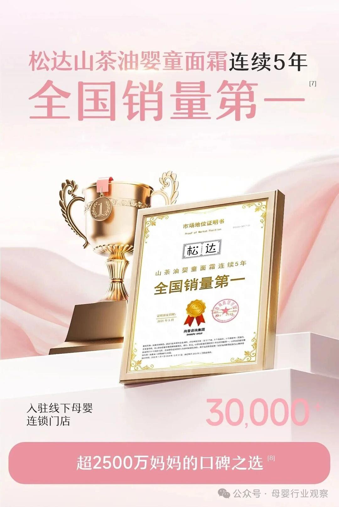 正如深耕精研婴童护肤赛道34年的松达,从日常维稳的山茶油霜到换季急救的山茶油特护霜,每一样成分都致力于安心、有效,每一款产品都围绕消费者核心痛点,这才筑就“了不起的中国山茶油”,成为2500万妈妈的共同选择,实现连续5年中国山茶油婴童面霜全国销量第一。