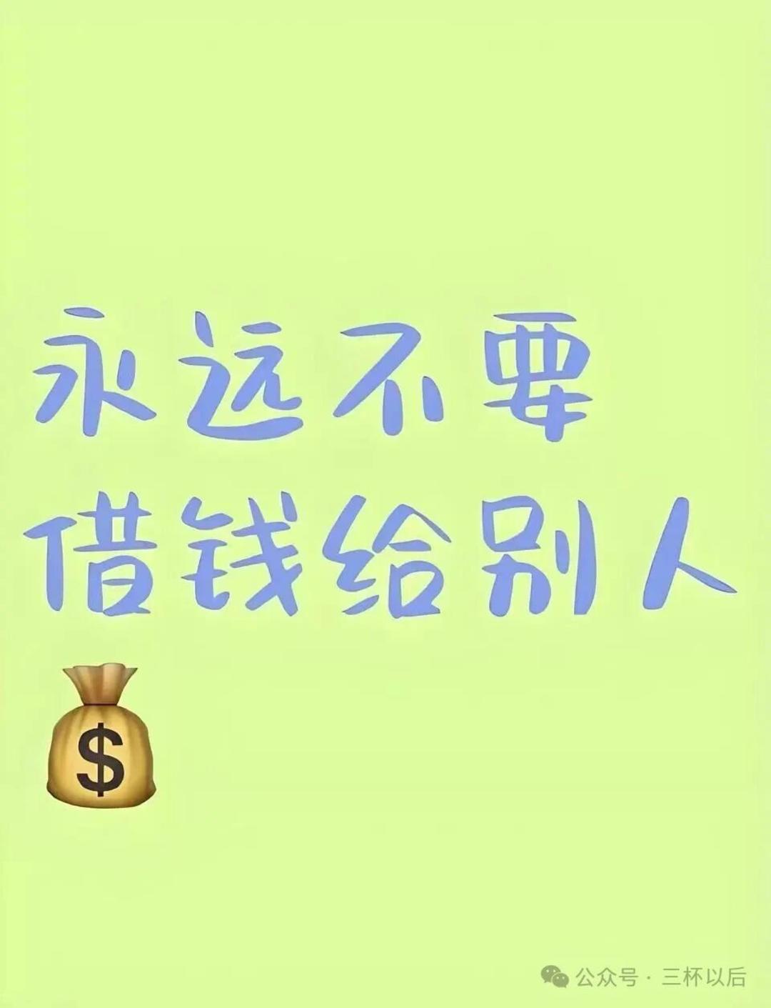 如果你想失去这个朋友,你就借钱给他吧,如果借钱你不借,顶多失去这个朋友,但是如果借钱你借了,那这个朋友和钱都会失去。不要心存幻想,不借钱也不借给别人钱,这是我这么多年的原则,也是我以后的原则。